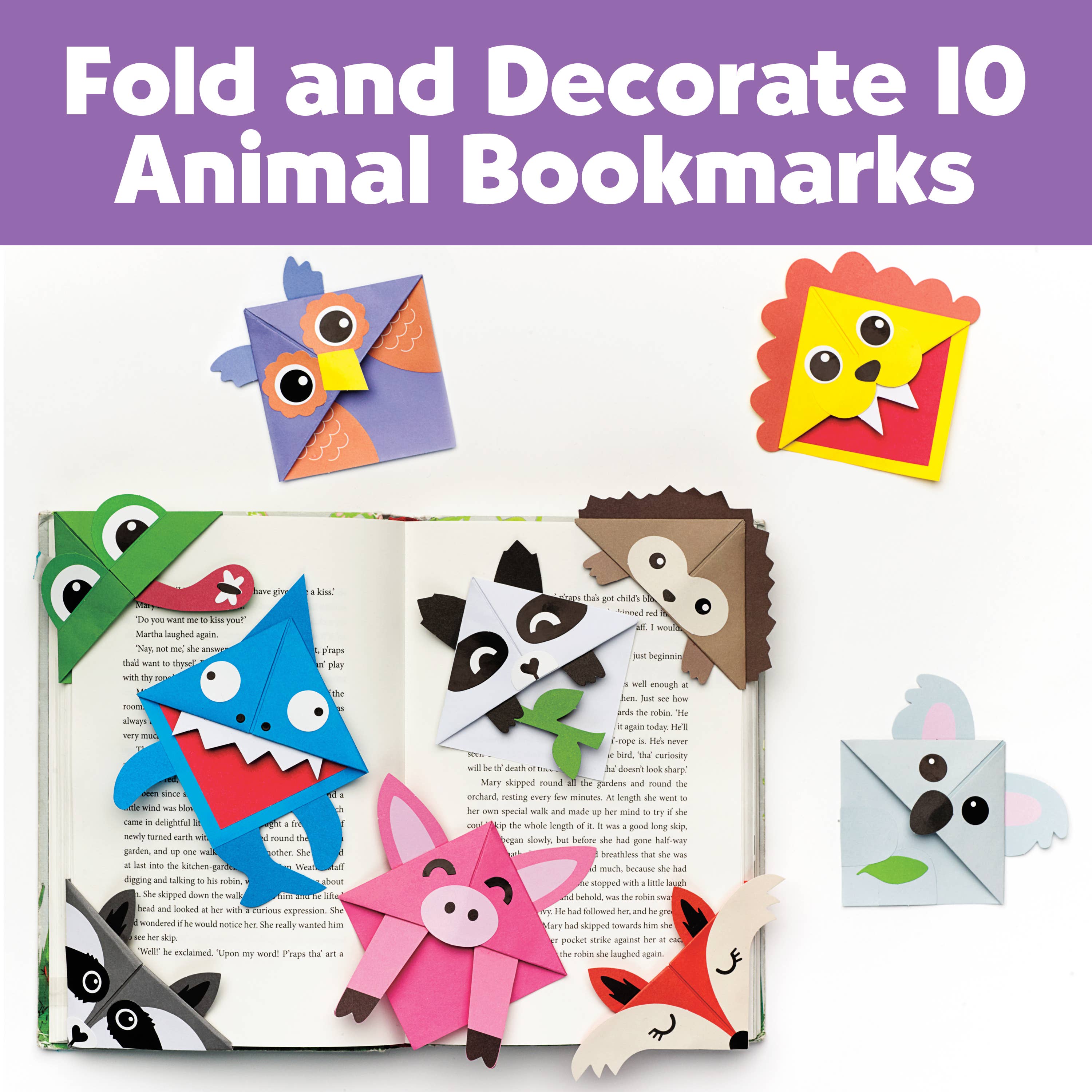 Use the ancient form of Origami when making these cute corner creature bookmarks. With 10 adorable design and easy to follow step-by-step directions, you'll never worry about losing your page again! This is a great back-to-school gift for school age kids.