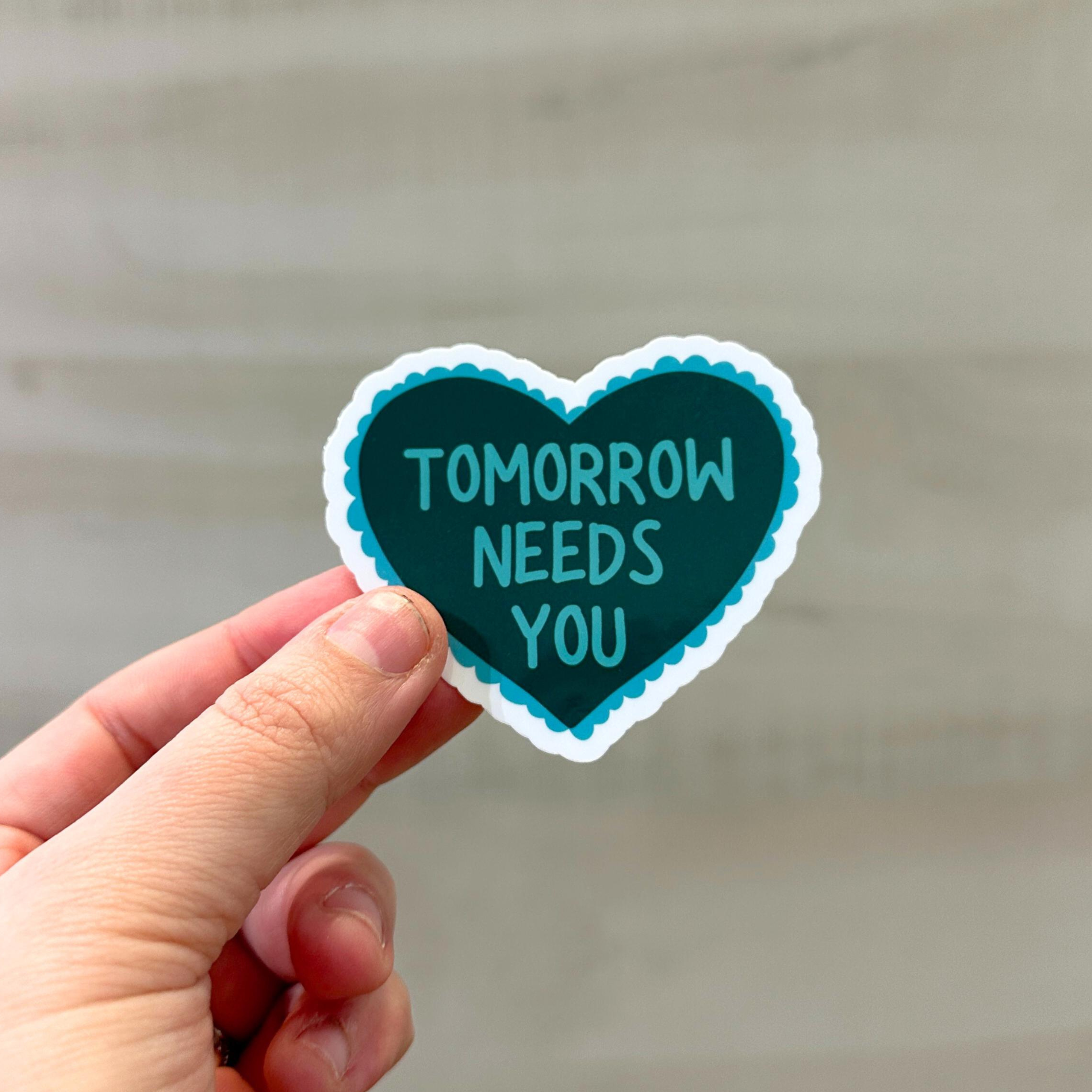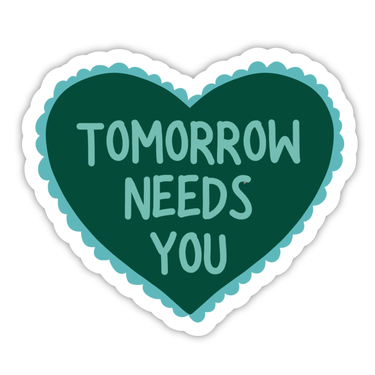 These 'Tomorrow Needs You' stickers are water resistant, weatherproof, and coated in a glossy laminate for a smooth to the touch feel.