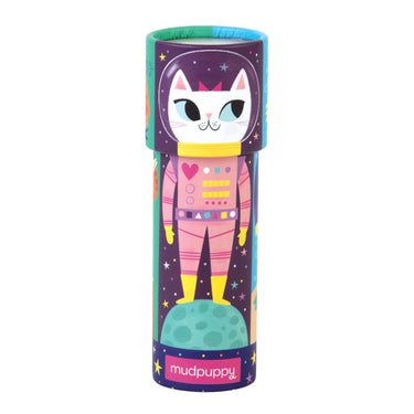 Look through the eyepiece and experience the magic of the kaleidoscope. Adventure Cats Mix & Match Kaleidoscope from Mudpuppy reveals colorful jewels when you turn the viewing tube. This special version includes additional fun on the outside with 3 cat adventurers to mix and match when you turn tube!