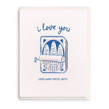 This modern take on a love note combines food puns with minimalist design, making it ideal for couples who appreciate wit and understated elegance. Single, hand-illustrated greeting card letterpress printed on plush paper and comes with a coordinating envelope. Made in the USA.